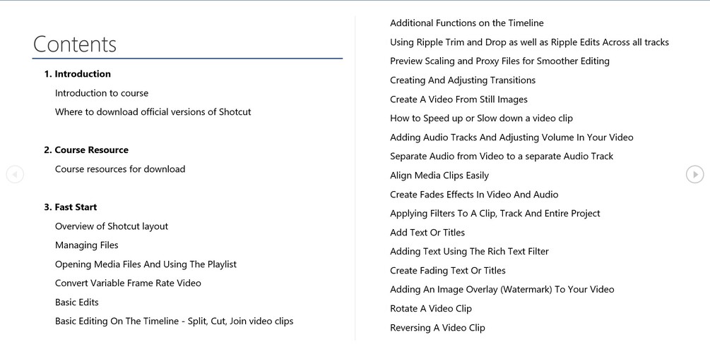 Thank you for being thorough and taking the time and effort needed to make it comprehensible for me. I was completely overwhelmed and intimidated by the Shotcut interface until watching you first two video chapters of this course.”