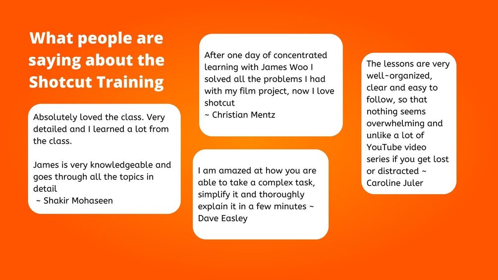 “This course got me up and running with Shotcut in no time” – Dave Ives